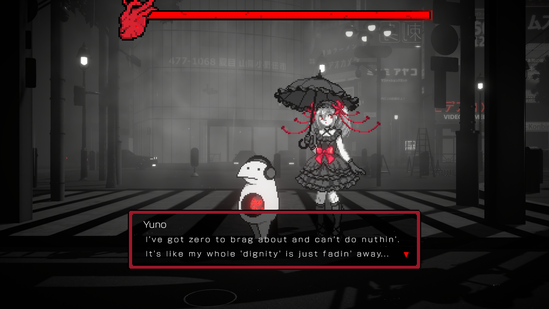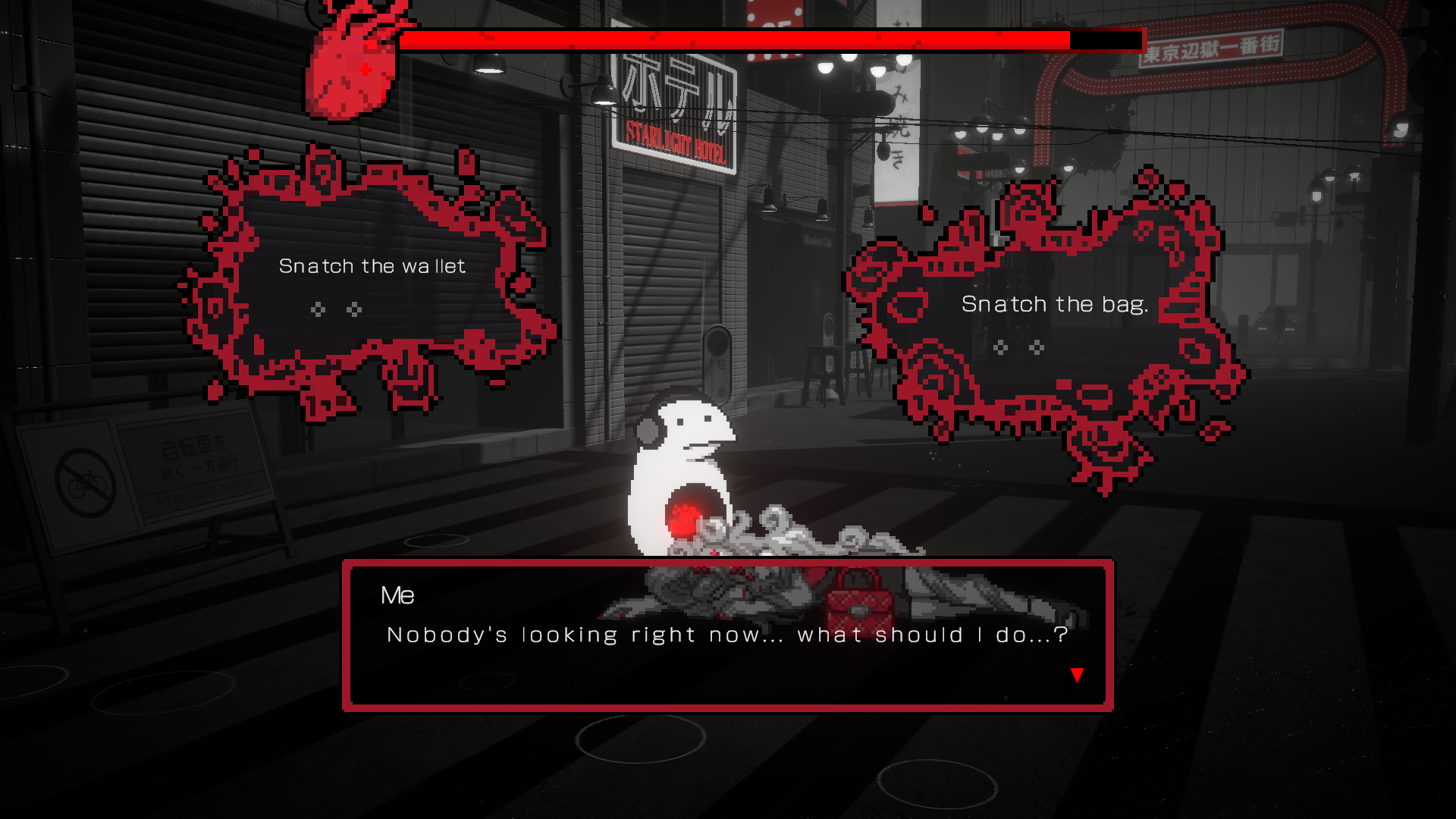 The protagonist can become nothing, and is on the verge of losing all dignity. In this city, just standing here causes dignity to vanish before your eyes.