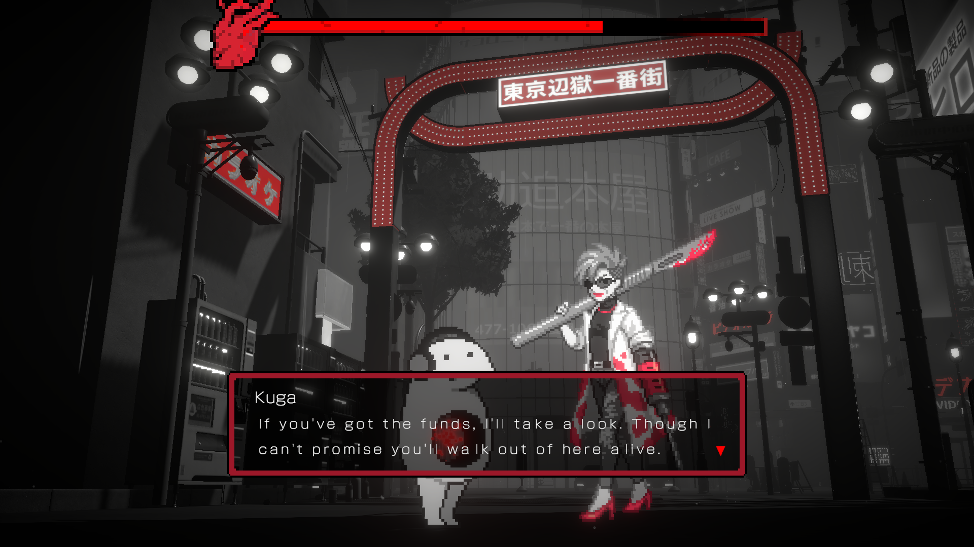 A world where decisions transcending the boundaries of good and evil are demanded unfolds through events in a nighttime town populated only by peculiar characters.