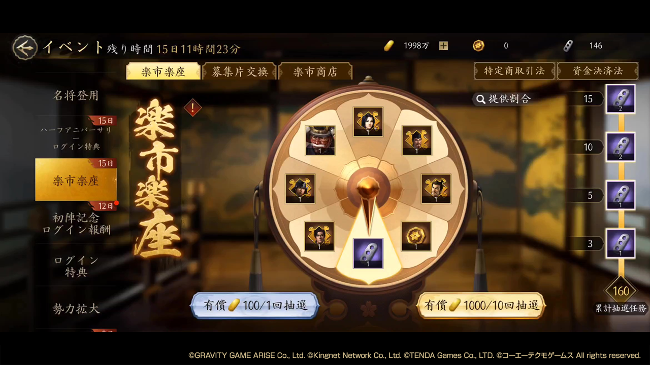 有償金を消費してルーレットを回すと、止まったマスに応じてゲーム内アイテムやSSR武将「上杉謙信・伝」を入手するための「上杉謙信・伝の募集片」が獲得できます!募集片を20枚集めると、SSR武将「上杉謙信・伝」を入手可能!